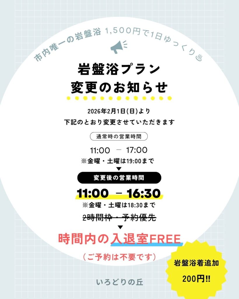 岩盤浴のプラン変更のご案内(2026年2月1日~)